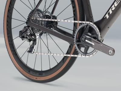 Einen leichten und aerodynamischen Rahmen aus 800 Series OCLV Carbon mit IsoSpeed-Komforttechnologie und vielen Befestigungspunkten für die wichtigsten Utensilien des Renntages. Bontrager Aeolus Pro 3V Carbonlaufräder und eine Trek Aero RSL Lenker-Vorbau-Einheit aus Carbon für ein leichtgewichtiges und agiles Fahrverhalten. Außerdem SRAMs Force XPLR AXS D2 Antrieb mit kabelloser Schaltung für ruppige Straßen.