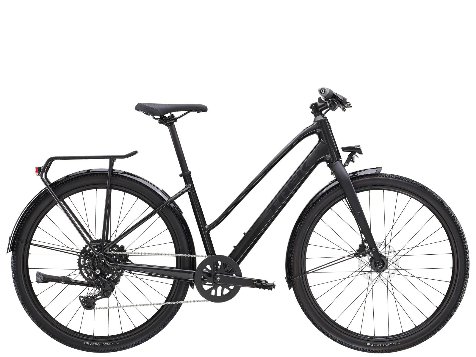 Einen leichten Midstep-Aluminiumrahmen mit interner Zugführung für einen sauberen Look, 650B-Laufräder mit breiten 50C-Reifen zur Verbesserung der Geländegängigkeit und des Komforts in abwechslungsreichem Terrain, eine zuverlässige Shimano CUES 1x9-Schaltung mit breitem Übersetzungsspektrum, komfortable ergonomische Griffe, kraftvolle hydraulische Scheibenbremsen für zuverlässige Bremsleistung bei jeder Witterung, einen MIK-kompatiblen Gepäckträger, Beleuchtung, Schutzbleche und einen Seitenständer.