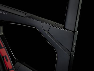 Einen ultraleichten Rahmen aus 800 Series OCLV Carbon, windschnittige Rohre mit Kammtail Virtual Foil-Profil (KVF), eine Speed Concept-Carbongabel mit aerodynamischem Profil, vibrationsdämpfendes IsoSpeed, integrierte Aufbewahrungslösungen für Verpflegung, Flüssigkeit und Pannenkit, einen drahtlosen, elektronischen SRAM Force AXS D2 12fach-Antrieb mit SRAM AXS Clics-Schalthebeln, einen SRAM Force AXS-Powermeter, einen vollständig integrierten Lenker samt Vorbau, einen triathlonspezifischen Bontrager Hilo Comp-Sattel für eine aggressive Aero-Sitzposition, Scheibenbremsen für zuverlässige Bremsleistung und Bontrager Aeolus Pro 51-