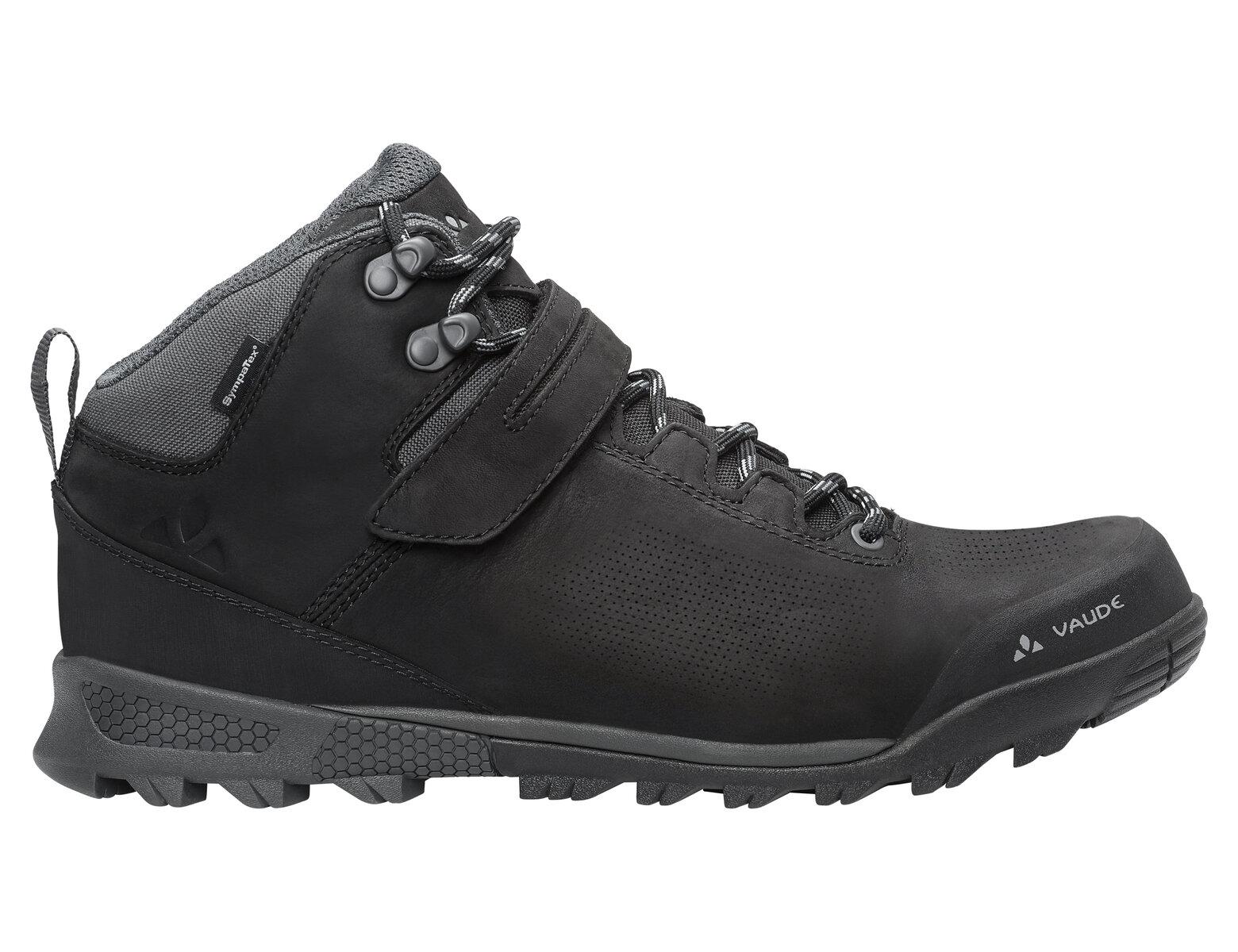 Wasserdichter Ganzjahres-Bikeschuh. Der AM Tsali Mid STX bietet ganzjährig die perfekte Mischung aus Komfort und Performance. Er sorgt für eine effiziente Kraftübertragung auf das Pedal und guten Tritt auf losem Untergrund und auf ausgedehnten Touren im alpinen Gelände.Der wasserdichte MTB-Schuh aus hochwertigem und robusten Leder von Terracare ist mit einer 100 % recycelten Membran ausgestattet. Die umweltfreundliche Sympatex® Membran schützt vor Nässe und Schmutz und sorgt durch die hohe Atmungsaktivität für ein angenehmes Fußklima. Die hohe Schaftkonstruktion sowie eine verstärkte Zehenkappe schützen Deinen Fuß vor Kurbelschlägen, Steinen oder Ästen. Eine klassische Schnürung sorgt in Kombination mit einem Klettverschluss für Passgenauigkeit und festen Halt. Abgerundet wird die perfekte Passform durch die Ortholite® Einlegesohle, die im Pedalbereich aus härterem PU-Schaum für eine optimale Kraftübertragung sorgt. Die All Mountain SUPtraction® T rubber Blend Sohle bietet ein dynamisches Profil mit einer erhöhten Auflagefläche auf dem Pedal und einer guten Abriebfestigkeit. Sie bietet Dir außerdem erstklassigen Halt auf jedem Terrain. Der Schuh wird mit einer abschraubbaren Abdeckung geliefert, so dass er mit und ohne Cleats gefahren werden kann. Der MTB-Schuh ist mit allen gängigen Klicksystemen kompatibel und sorgt zusammen mit einer mittleren Steifigkeit (V-Flow 6) für optimalen Fahrspaß auf den Trails. Das hochwertige Leder von Terracare stammt aus deutscher Produktion und wurde besonders umweltschonend hergestellt. Das VAUDE Green Shape-Label steht für ein umweltfreundliches, funktionelles Produkt aus nachhaltigen Materialien.