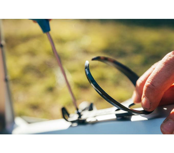 Gebinde/Inhalt: 1 Flaschenhalter, 2 Befestigungsschrauben aus anodisiertem Aluminium